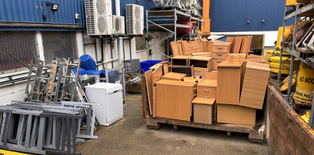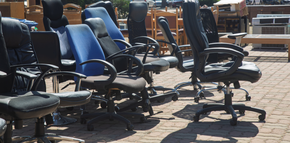Any of these items are suitable for recycling: Desking and tables, drawer units, task, and conference chairs, soft seating, steel storage, wooden storage, desk dividers and privacy screens.